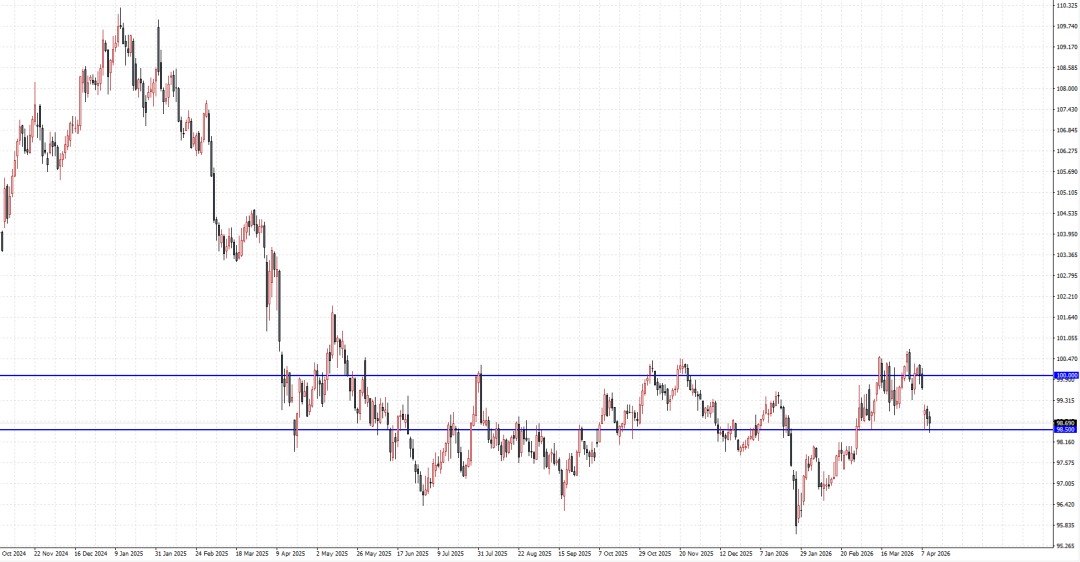 综合而言,尽管美伊达成的两周停火协议已几乎抹去美元指数近期涨幅,但在深层结构性风险未完全消除之前,美元底盘避险逻辑仍然存在。因此,当前美元的回撤更像是对前期溢价看涨后的阶段性修正,而非单一的否定性押注。与此同时,美元指数走势并非单一因素所致,而是利率预期、政治噪音与数据传导共同作用的结果。美元指数所呈现的是宏观叙事进入再评估阶段后的典型形态:趋势在、分歧也在。通胀数据仍是主导变量,但数据质量问题让市场更难形成一致的中期定价;石油市场成传导关键,油价回落缓解通胀压力。霍尔木兹海峡作为全球能源运输的“咽喉要道”,承载着全球约20%的石油海运量,其航运安全直接影响国际油价走势,进而传导至美元汇率。停火消息公布后,市场对能源供给中断的恐慌情绪显著缓解,国际油价应声回调。油价的回落一定程度上缓解了此前助推美元走强的通胀压力,但交易员对当前的外交表态保持谨慎态度。短期航运风险的缓和虽能平息市场恐慌,但油价中的地缘风险溢价难以完全消除,除非霍尔木兹海峡的航运流量持续稳定,且中东地缘局势出现实质性、可持续的缓和,否则油价仍可能维持在相对高位,这也为美元提供了隐性支撑。市场仍需关注三大不确定性变量:伊朗方面的导弹威胁是否会持续、霍尔木兹海峡的航运风险能否彻底解除、以及此次停火协议能否突破“短期化”困境。多重风险叠加之下,交易员并未彻底放弃对美元的配置,避险买盘的“安全垫”仍未完全消失。技术层面上,如若美元指数可在短期内可成功收复100.00美元关口,并位于该区域上方再度巩固底仓,则将有望重振多头控盘节奏,为其价格回升测试100.50高位平台提供新的看涨动力。而如若支撑端口98.50美元区域彻底失守,则多头降低敞口所引发的高位回撤或推动价格指数回落至98.00美元一线进行修正的风险将迅速上升。